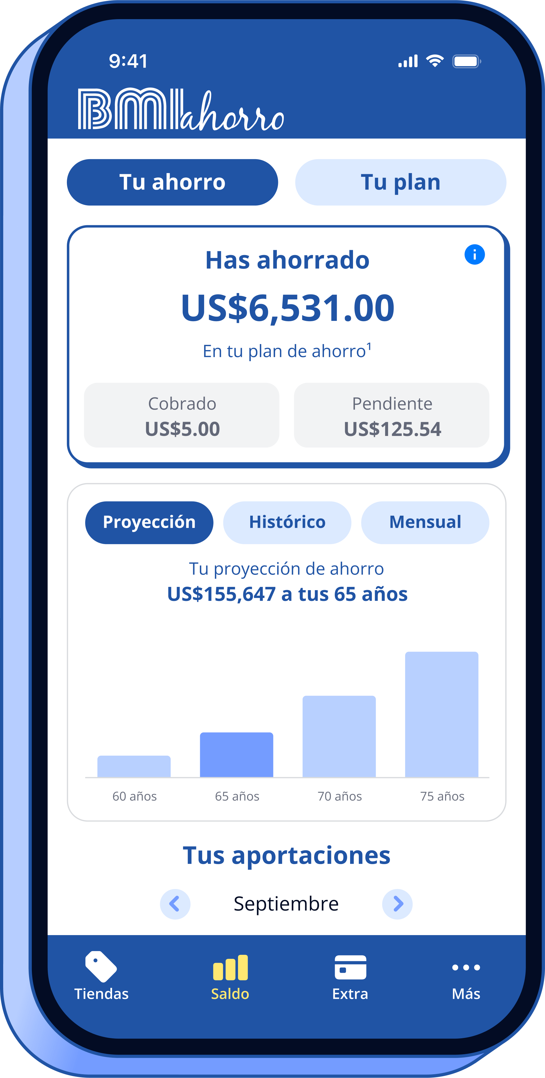 Aporte medio mensual de US$12.5* a tu plan de ahorro